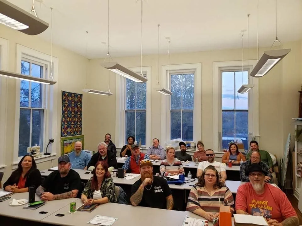 Local participants at the 2021 Pop Up Marion Entrepreneurial Boot Camp, held upstairs at the Wayne C Henderson School of the Appalachian Arts in downtown Marion, VA